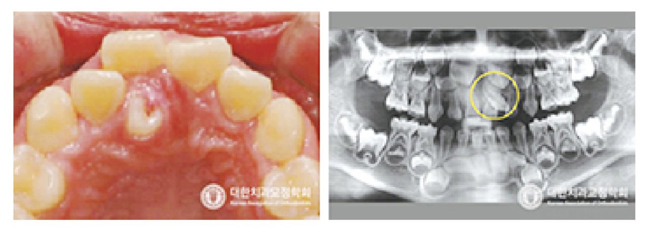 조기에 발견하여 적절한 조치를 취해야 더 큰 문제를 예방할 수 있으며 치료 시기가 늦어지는 경우 맹출이 불가능하여 그냥 빼야 할 수도 있습니다. 따라서 영구치로 교환하는 시기인 6~7세 정도에는 교정과 의사와 상담하시어 치아의 맹출 경로에 이상이 없는지를 체크하시는 것이 꼭 필요합니다.