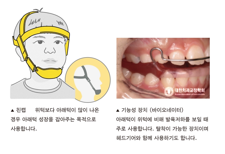 위턱과 아래턱이 조화로운 위치 관계를 가지면서 성장하도록 환경을 만들어 주는 것을 ‘턱교정(턱 성장 조절) 치료’라고 합니다.